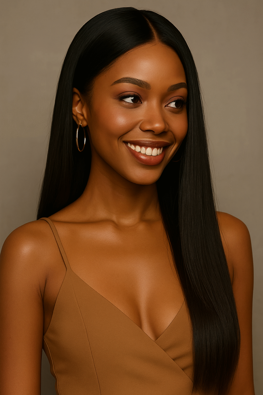 This beautiful silky satin smooth straight hair gives a flawless polished look. Because of its natural raw texture it can also be straightened, curled or roller set.